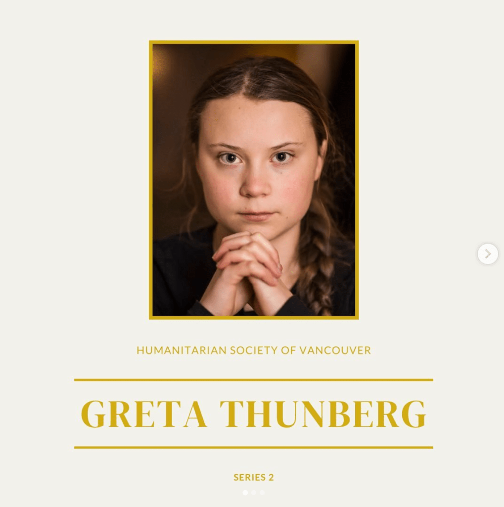 The Humanitarian Society of Vancouver would like to recognize Greta Thunberg for her incredible work on bringing awareness to the climate change crisis. At the age of 15, she skipped school to protest in front of Sweden’s parliament building and was determined ever since to continue her protest until the government met the carbon emissions target agreed by the world leaders in 2015. She then went viral on social media which encouraged over 20,000 students around the world to also protest. In 2019, Greta took the school year off to continue campaigning for climate change. She has attended protests and has spoken at many conferences internationally. For instance, she had travelled to New York, by boat, to speak to world leaders at the UN Climate Action Summit. Although Greta has won many awards, she has been persistent throughout her career to see real change on this topic.